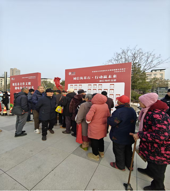 活動(dòng)聚焦“普及誠信知識(shí)、強(qiáng)化誠信意識(shí)、踐行誠信理念”目標(biāo),創(chuàng)新采用線下“隨機(jī)抽題+現(xiàn)場作答+即時(shí)講解”的形式增強(qiáng)體驗(yàn)感。精心設(shè)置單選題、情景判斷題等題型,內(nèi)容涵蓋誠信相關(guān)法律法規(guī)、社會(huì)信用體系建設(shè)政策、經(jīng)典誠信故事、日常誠信行為規(guī)范等多個(gè)方面?,F(xiàn)場群眾通過抽號(hào)答題、互動(dòng)競猜的方式,在輕松氛圍中學(xué)習(xí)誠信知識(shí)。工作人員對(duì)題目中涉及的法律法規(guī)和信用知識(shí)進(jìn)行現(xiàn)場解讀,實(shí)現(xiàn)知識(shí)普及與實(shí)踐指導(dǎo)有機(jī)結(jié)合?;顒?dòng)根據(jù)題目難易程度,對(duì)回答正確的老百姓發(fā)放抽紙、洗衣液、香皂等日常生活用品500余份?;顒?dòng)現(xiàn)場還配套發(fā)放《誠信建設(shè)宣傳手冊(cè)》等資料500余份,幫助群眾進(jìn)一步理解“守信激勵(lì)、失信懲戒”的社會(huì)信用規(guī)則。